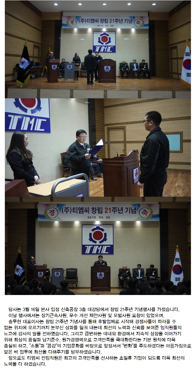 창립 21주년 기념행사(3.16) 페이지 정보 작성일 : 12-03-21 조회수 : 27,942회 본문 . 목록 이전글지식경제부 주관 "2012 우리지역 일하기 좋은 기업" 선정(4.30) 12.04.30 다음글2012년 시무식 개최(1.3) 12.01.03