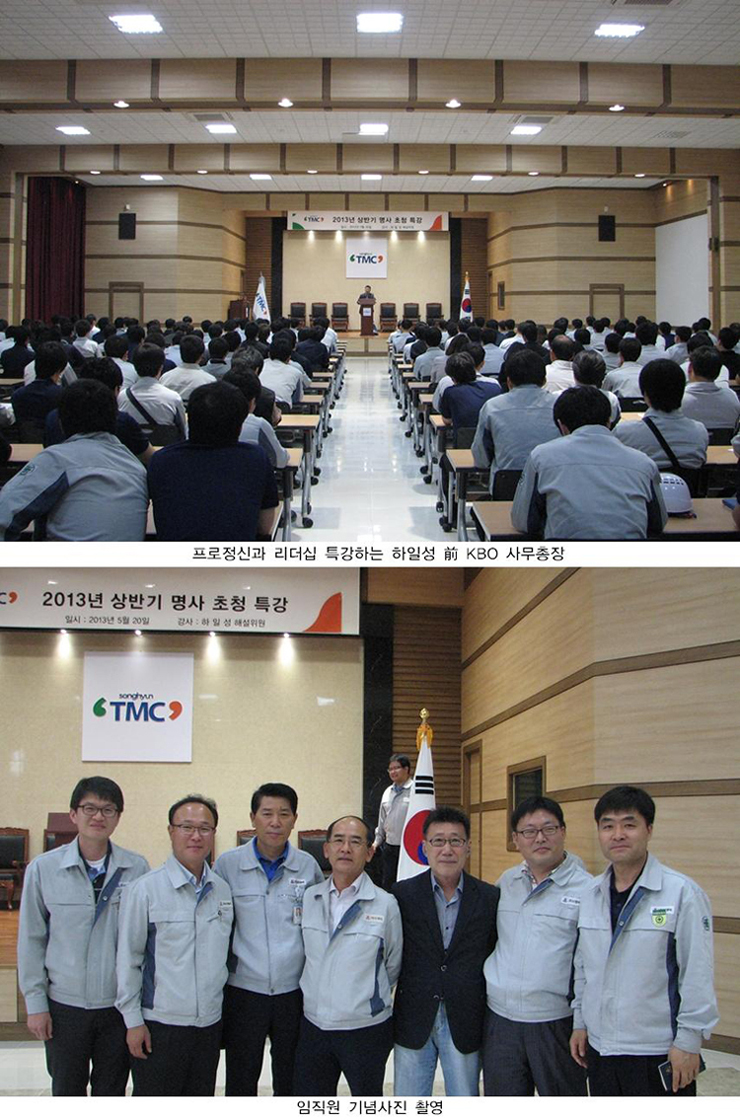 당사는 5월 20일 천안 본사 대강당에서 임직원 250여 명이 참석한 가운데, 하일성 前 한국야구위원회 사무총장을 초청해 「프로정신과 리더십」을 주제로 명사특강을 실시하였습니다.