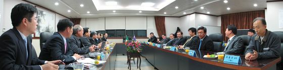 당사에서는 송무현 사장님과 임원들께서 방문객들을 영접하였고 회사 영상물 시청과 프리젠테이션,