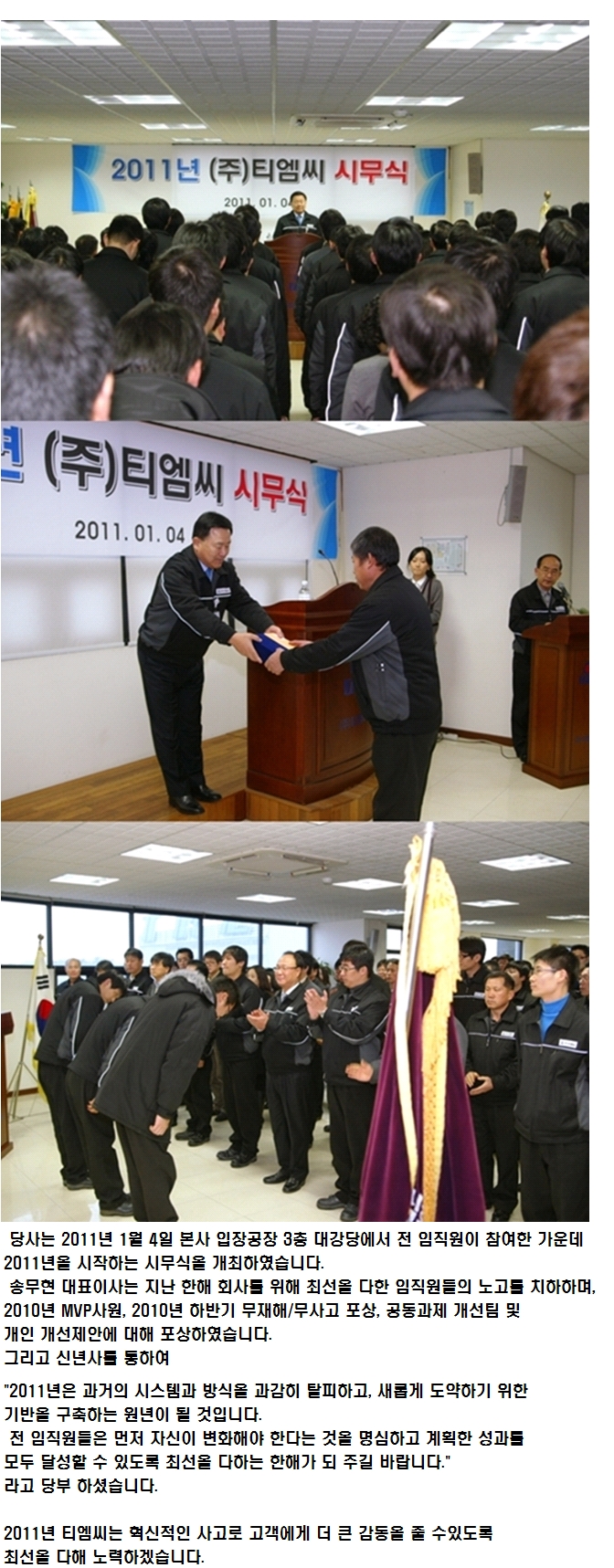 2011년 시무식 개최(1.4) 페이지 정보 작성일 : 11-01-04 조회수 : 30,706회 본문 목록 이전글창립 20주년 기념행사(3.17) 11.03.18 다음글(2010 전선특집)티엠씨(전기신문, 9/29) 10.09.30